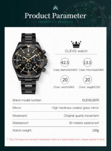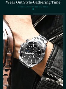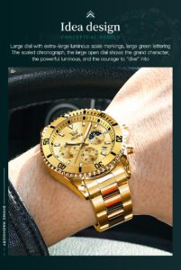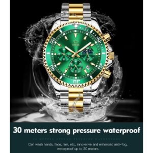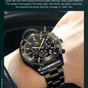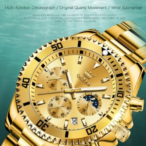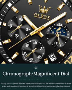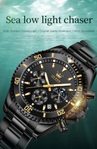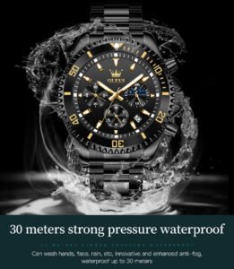 Feature – Shock Resistant,Auto Date,Chronograph,Complete Calendar,Diver,Moon Phase,Water Resistant,swim – Water Resistance Depth – 3Bar
