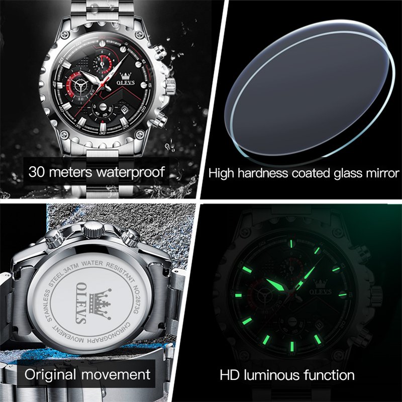 Feature – Chronograph,Complete Calendar,Water Resistant,luminous hands