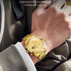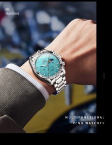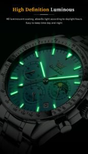 Feature – Shock Resistant,Luminous,Auto Date,Chronograph,Moon Phase,Water Resistant,luminous hands