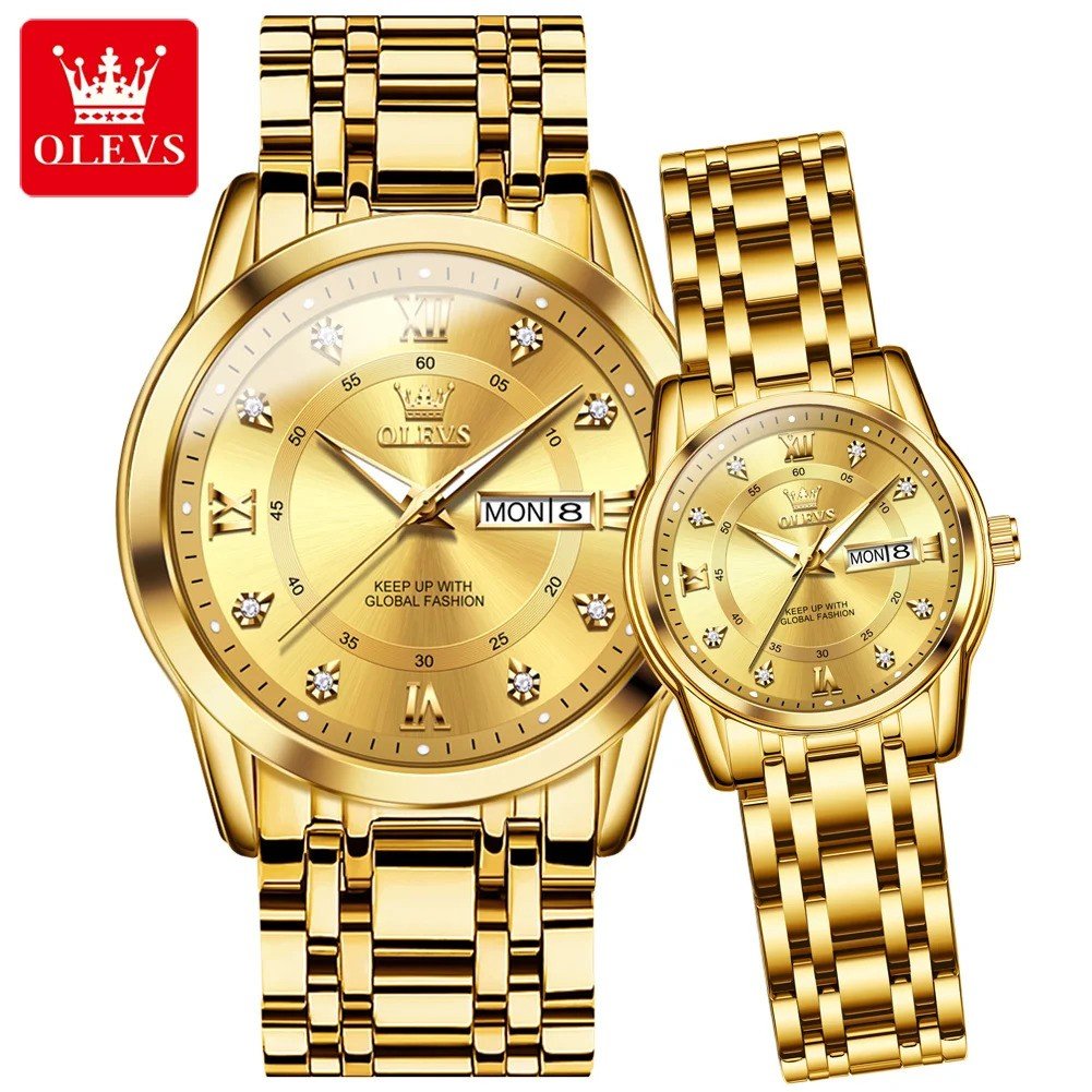 OLEVS 5513C Stainless Steel Analog Wrist Watch For Couple