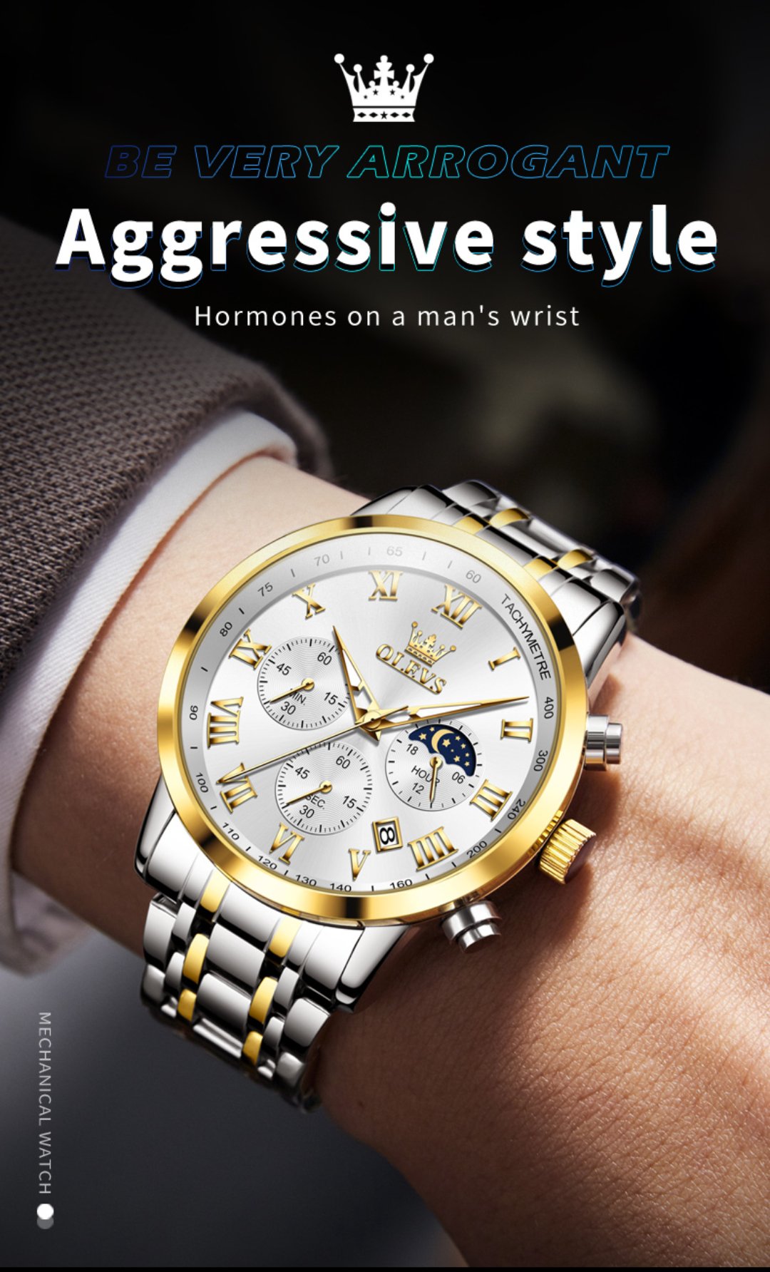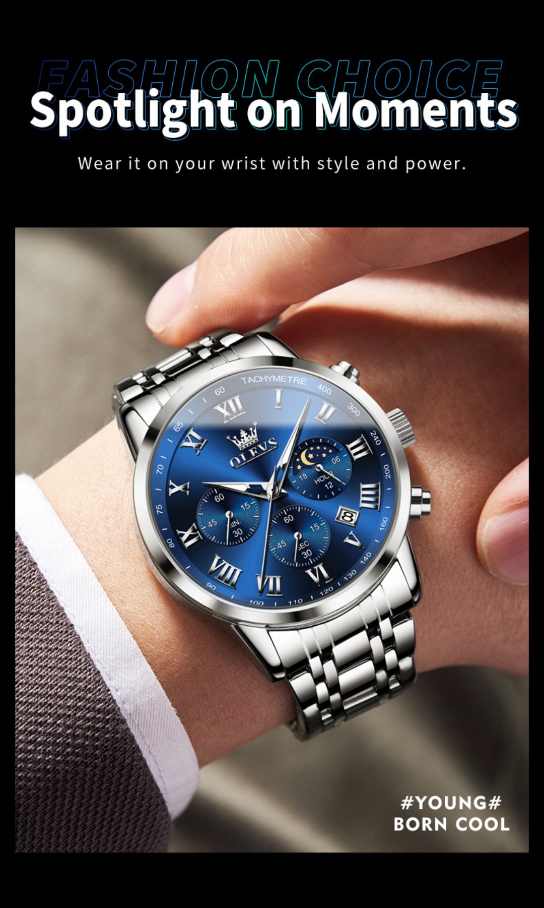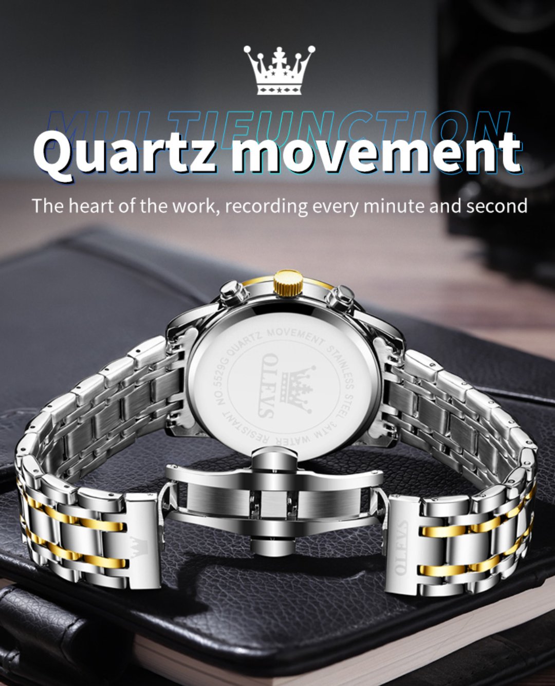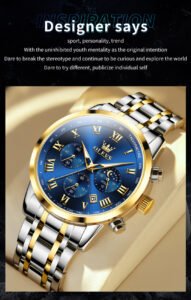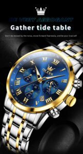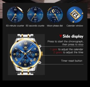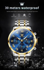 5529_RoyalBlue & Silver & Golden Olevs 5529 Stainless Steel Chr...