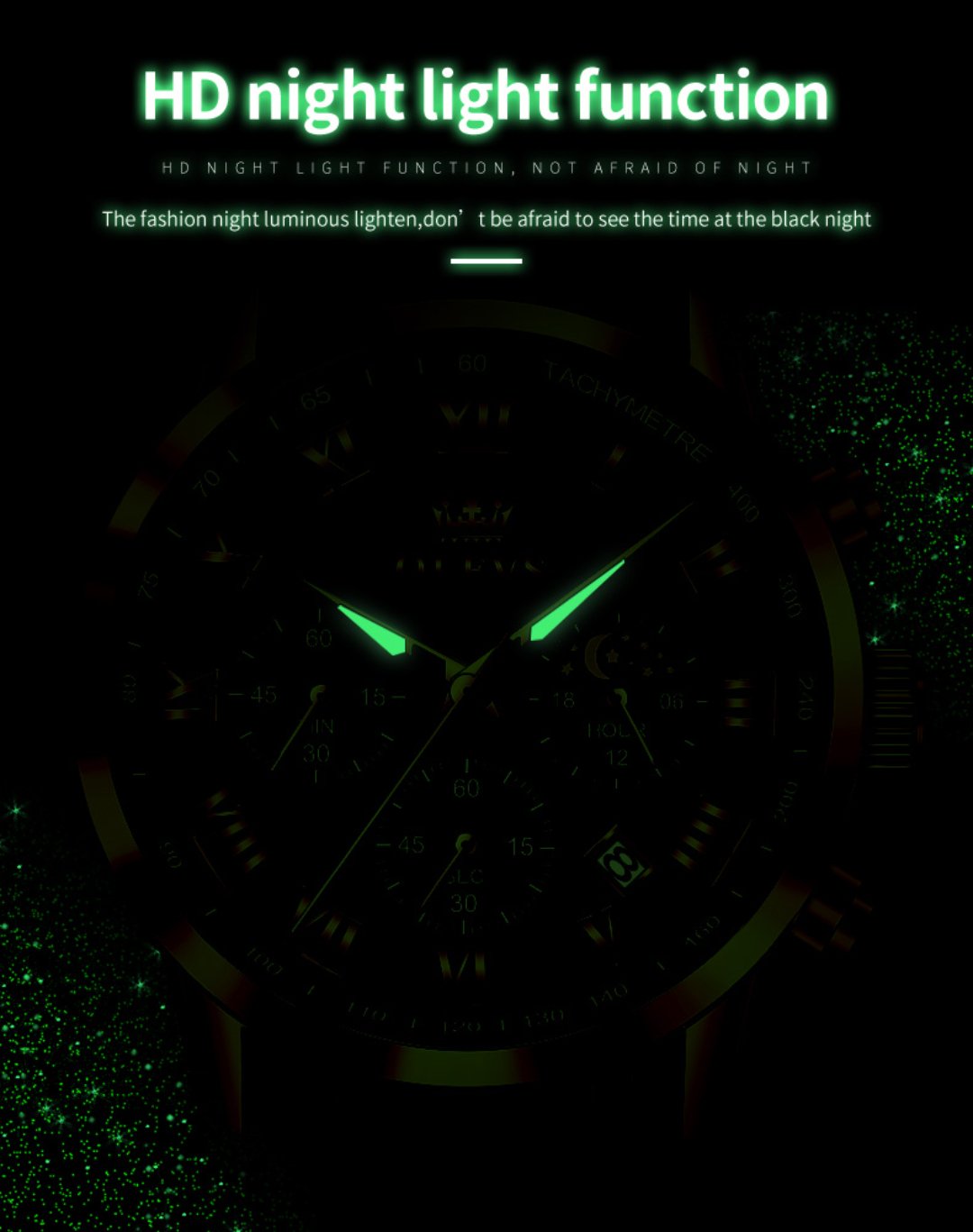 Feature – Shock Resistant,Luminous,Chronograph,Complete Calendar,DIVER,Moon Phase,Multiple Time Zone,Water Resistant,luminous hands