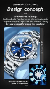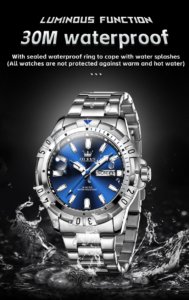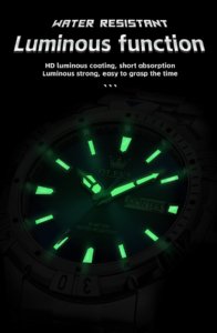 Feature – Complete Calendar,Water Resistant,Week Display,luminous hands
