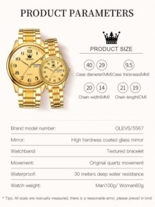 OLEVS 5567 Stainless Steel Analog Wrist Watch For Couple